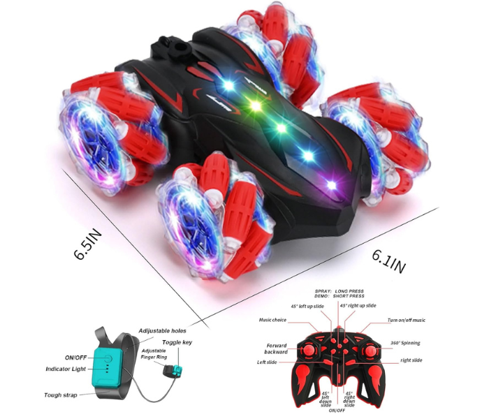 🤚 Hand Gesture & Remote Control Control the car with wristwatch gesture controller or 2.4G remote for easy, responsive fun. Supports multiple cars playing simultaneously.